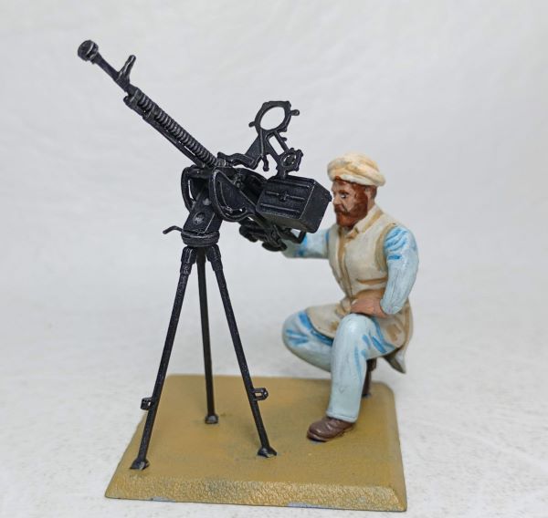 Ametralladora antiaérea DHSK y combatiente mujaidin en contexto de la guerra Afgano-Soviética de principios de los 80'.