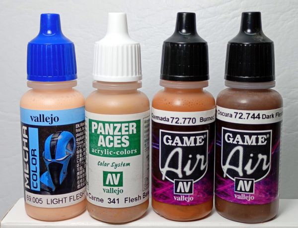Lo ideal es aplicar la base con el "Base Carne" que tiene la viscosidad espesa para pincel, con gran capacidad cubritiva, en tanto que las luces con el "Piel clara" y las sombras con los otros dos tonos oscuros, dependiendo los efectos buscados. Estos últimos tres colores son con viscosidad para aerógrafo, lo que simplifica su aplicación, ya que tanto luces como sombras se deben aplicar en sutiles capas de pintura bastante diluida.