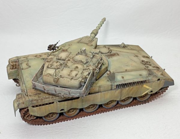 Israel decidió fabricar su propio tanque luego de una negativa de Inglaterra de suministrarle tanques Chieftain, ( quien protegía sus intereses en países árabes), desarrolló entonces el tanque Merkava, buscando también una respuesta a los T 62 soviéticos que tenían las naciones árabes. Aquí la versión I con el esquema que se utilizó en la invasión al Líbano en 1982, el tanque continúa al dia de hoy en versiones modernizadas. la maqueta de Tamiya reproduce fielmente la ingeniería de esta máquina de guerra. Contaba con un cañon de 105 mm.