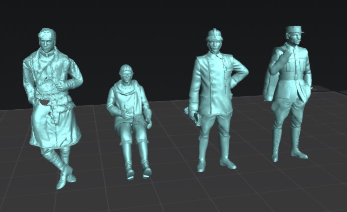4 figuras de resina (tres paradas y una sentada)