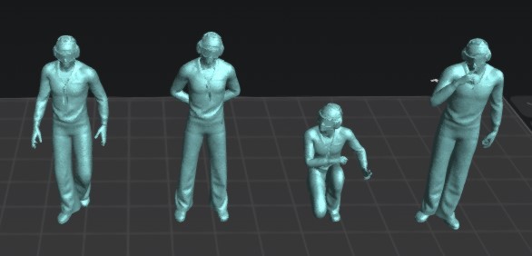 Set de 4 figuras de tripulantes de cubierta de portaaviones genéricas en distintas poses, para dioramas.