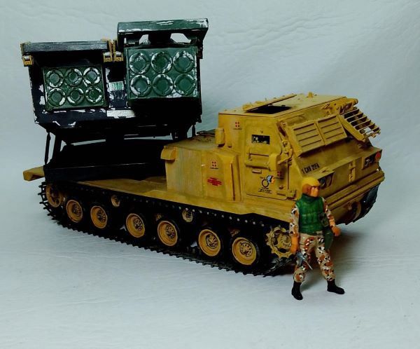 Vehículo moderno con lanzador de cohetes.